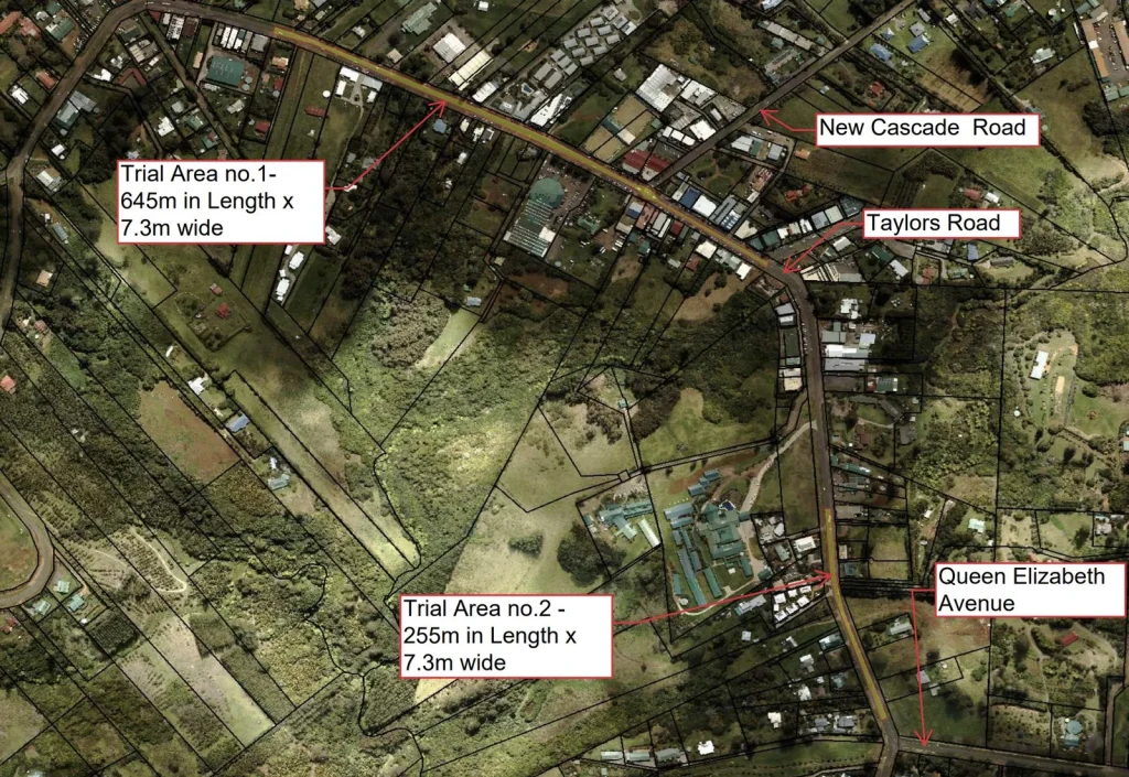 テイラーズ・ロードは過去のオーバーレイ対象から外れていた老朽化した舗装で、酸化、ひび割れ、頻発するポットホールが発生していました。ノーフォーク島地域評議会と連携し、PHF™による補修とPRS/TL2000による全面再生を実施しました。現地作業員は、シンプルなスプレー車の構成と仕上げワークフローの操作技能を習得しました。